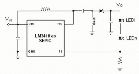 SEPIC轉換器擁有連續(xù)輸入電流的優(yōu)點,這個連續(xù)輸入電流是由輸入電感和正輸出電壓產生的。像boost和單電感buck-boost,它們需要一個輸出電容來維持一個平滑LED電流。另外一個SEPIC轉換器的優(yōu)點是幾乎任何一個低端調節(jié)器或者控制器都可以被設置成為一個毋需反偏或測平移動電路的SEPIC。