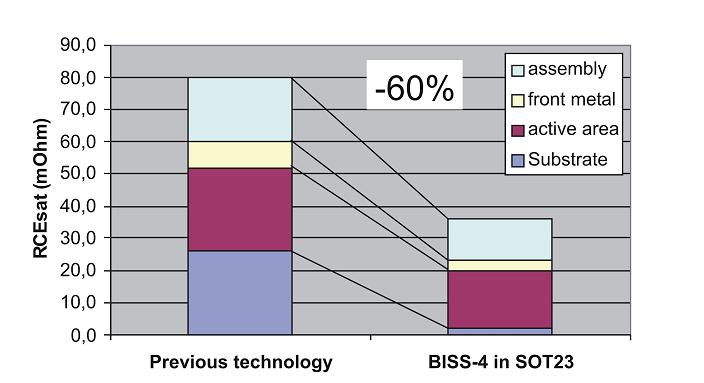 由于雙極晶體管電阻受多重因素影響,開發新型中功率雙極晶體管需要認真評估完整的晶體管架構(選材、芯片設計、芯片金屬化、芯片/封裝連接和封裝架構)。第四代BISS雙極晶體管系列共分兩類。