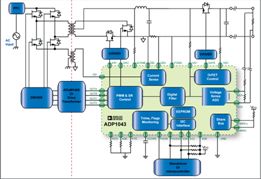 如何提高電源的效率,是目前電源設(shè)計中面臨的重要課題。數(shù)字電源技術(shù)的出現(xiàn)為提高電源的效率提供了新的方法。ADP1043是ADI公司推出的一款針對高端服務器、存儲器以及通信設(shè)備等電源所設(shè)計的數(shù)字電源控制器,可支持多種拓撲結(jié)構(gòu),并利用直觀的圖形用戶界面(GUI)無需用語言進行編程,便可在幾分鐘之內(nèi)配置包括頻率、時序、電壓設(shè)置與保護限制等系統(tǒng)電源參數(shù)。圖1所示為ADP1043的典型應用電路。其所采用的數(shù)字電源技術(shù)可幫助實現(xiàn)高效率電源。