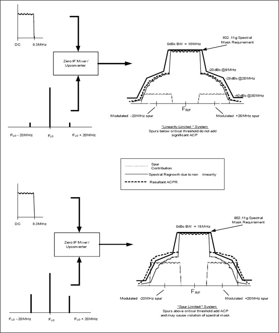 圖7.802.11a/b/g頻譜模板和雜散造成的性能下降
