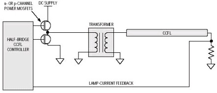 推挽驅(qū)動(dòng)器有很多好處:這種架構(gòu)只用到n通道MOSFET(圖4),這有利於降低成本和增加轉(zhuǎn)換器效率;它很容易適應(yīng)較高的轉(zhuǎn)換器直流電源電壓;采用更高的轉(zhuǎn)換器直流電源電壓時(shí),只需選擇具有合適的漏-源擊穿電壓的MOSFET即可。不管轉(zhuǎn)換器的直流電源電壓如何,都可采用同樣的CCFL控制器。但采用n通道MOSFET的全橋和半橋架構(gòu)就無(wú)法做到這一點(diǎn)。
