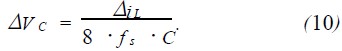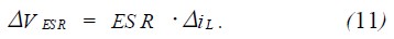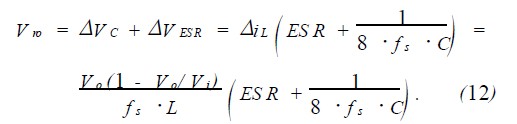 ΔVESR也會作為紋波的一部分表現在輸出端上,所以總的紋波表達式為式(10)和式(11)的和,即: