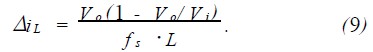 ΔiL為線圈上紋波電流的絕對值。將式(5)和式(6)代入式(7),整理得: