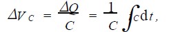 首先計算第一部分。當ΔiC流過理想電容C時,在C兩端產生的電壓變化: