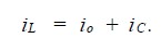 注意到在輸出部分,電感電流在電容C和負載之間分割,有: