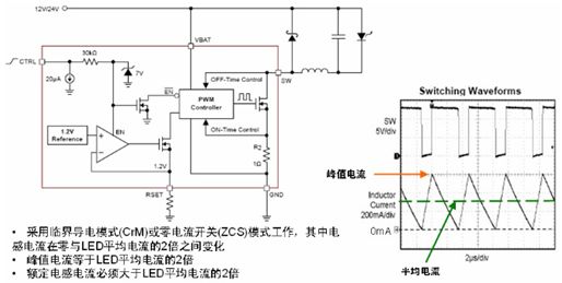 在模塊化途徑下,一項設計能夠擴展用于多種光輸出等級。而且隨著LED光輸出性能增強,LED模塊要提供相同光輸出等級,所需采用的燈條就更好。而每個燈條都設有一個專用的DC-DC LED驅動器,如可以采用安森美半導體的CAT4201高能效降壓LED驅動器。CAT4201專門優化用于驅動大電流LED,采用具有專利的開關控制算法,提供高能效及精確的LED穩流(可達350 mA)。CAT4201的工作簡化框圖如圖3所示。