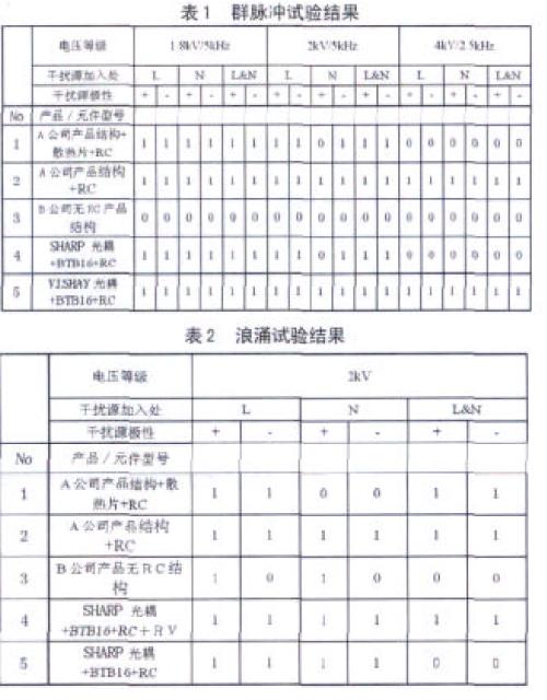 (4) 不同的光耦和不同的可控硅組合對EMC 性能也有較大影響;