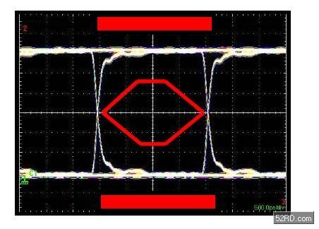 通過在示波器的垂直軸對數字信號進行反復采樣、同時采用相應數據率對水平時間掃描進行觸發來生成眼圖。所獲得的圖形看上去象眼睛,如圖1所示。“眼睛”越大,數據完整性越高。通常采用模板(mask)來對可接受的信號質量進行定義。這模板由“眼睛”中間的六角形和“眼睛”上、下的矩陣組成。如果測得的信號跡線穿越模板的邊線,那么信號質量就不可接受。USB2.0信號模板規范由USB應用者論壇(USBIF,www.usb.org)提供,可參見USB2.0版規范第7.1.2.2章節。圖1中顯示了帶有詳細臨界點的眼圖。