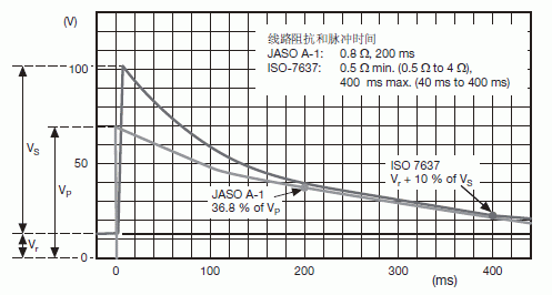 表1:JASO A-1和ISO-7637-2 Pulse 5測試仿真條件。