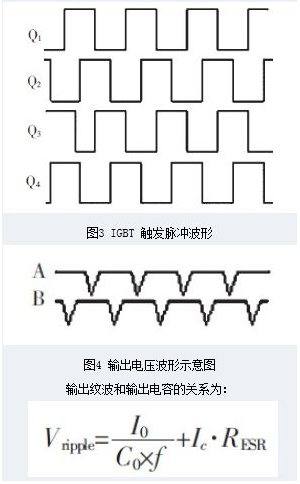 鑒于以上問題,本文采用雙路電源并聯(lián)輸出的方法得到低紋波直流。在開關(guān)管頻率受限的今天,本方法可以在頻率較低的情況下得到低紋波直流?! ?br />