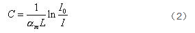 式中 為摩爾分子吸收系數;C 為待測氣體濃度;L 為光和氣體的作用長度(傳感長度)。對上式進行變換得: