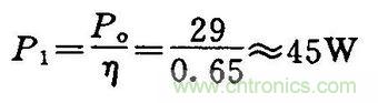 開關電源的效率η一般在60~90%之間,本例取η=0.65,則輸入功率為