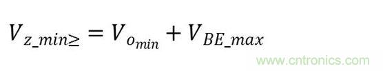 輸出電壓等于反向齊納電壓VZ減去該晶體管基極至發射極電壓VBE。因此,最低反向齊納電壓應符合下述要求(方程式1):