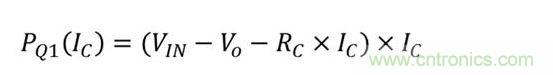 就晶體管Q1而言,因為有限流電阻器RC,所以在短路事件中不會發生最壞情況下的功耗。在正常運行期間Q1的功耗是集電極電流的函數,如方程式7所示: