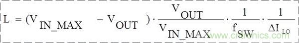 為選擇適當的電感,通常可假定電流紋波ΔILO為電感平均電流的30%,然后根據下面的公式直接計算出合適的電感值。