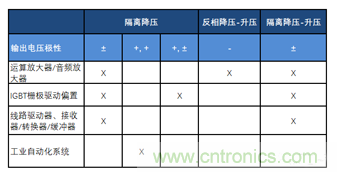 正如以上討論的,根據不同的輸入電壓軌,設計工程師可以選擇不同的拓撲,來提供適用于各種應用的電源軌。表1總結了適合不同應用的拓撲。