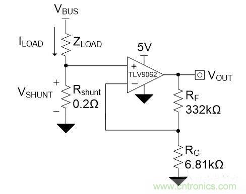 在設計低側電流感應電路時,高性價比的方法之一是使用非反相配置運算放大器(op amp)。圖1是使用運算放大器的典型低側電流感應電路原理圖。