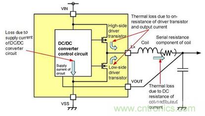 圖1 降壓DC/DC轉換器的主要能量損耗部分