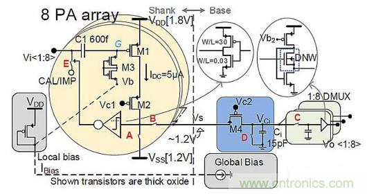 PA的面積受到電極大小的限制。其功率受限于可接受的組織加熱限制。噪聲需要比最小信號幅度(可能低至幾十微伏)更低。通常,降低噪聲的簡單方法是為PA晶體管提供更多電流,這也將帶來更高帶寬。