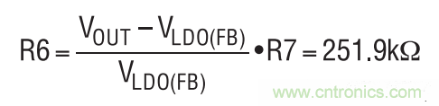 通過將 R7 設(shè)定為 80.6k,并計算 R6 阻值,把 LDO 后備模式輸出電壓設(shè)定為3.3V。VLDO(FB)為0.8V。