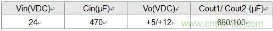 為了進(jìn)一步穩(wěn)定輸入電源,在輸入端增加一電容Cin,若為了進(jìn)一步減小輸出紋波和噪聲,可在輸出端增加一串聯(lián)等效阻抗小的電容Cout,但容值不能超過(guò)該產(chǎn)品的最大容性負(fù)載,否則會(huì)造成電源模塊啟動(dòng)不良。推薦外接電容值,如表1所示。