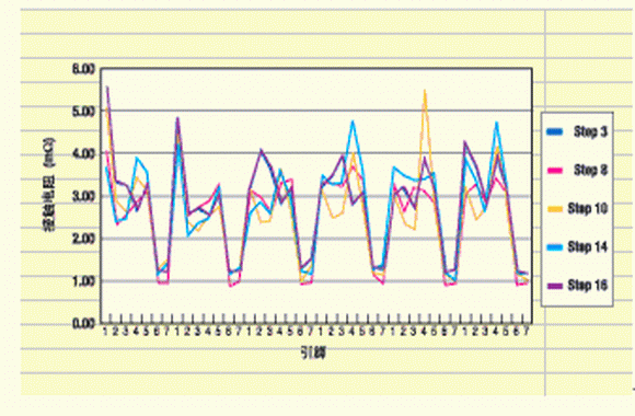 通過六條電纜、七個(gè)接觸件對(duì)接觸電阻的測(cè)試,共得到42個(gè)數(shù)據(jù)。一至五與六、七接觸件的區(qū)別可以由電纜規(guī)格的不同來說明:一至五的規(guī)格是24AWG,而六和七的是26AWG。