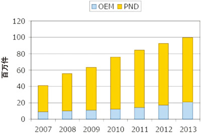 - 2013年OEM儀表板內(nèi)置導(dǎo)航儀的年均增長率將達(dá)到15%