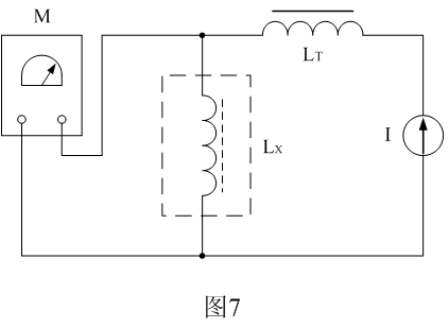 圖7是采用電流迭加法測試開關(guān)變壓器電感量或伏秒容量的工作原理圖。圖7中,M是電感測試儀,LT是隔離電感,I是恒流源,Lx為待測開關(guān)變壓器的初級電感。LT的電感量必須遠(yuǎn)遠(yuǎn)大于被測開關(guān)變壓器初級線圈的電感量。下面我們來介紹圖7的工作原理。