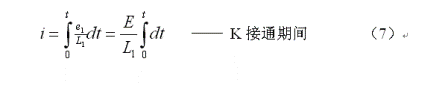 上面(8)式是用來計(jì)算開關(guān)電源變壓器初級線圈或儲能電感線圈電流的公式,式中 為流開關(guān)電源變壓器初級線圈或儲能電感線圈電流的最大值,即:開關(guān)接通后,持續(xù)時(shí)間等于 時(shí),流過變壓器初級線圈或儲能電感線圈電流的瞬時(shí)值;E為開關(guān)電源的工作電壓,V為加于變壓器初級線圈兩端的開關(guān)電壓(直流脈沖電壓),L1為變壓器初級線圈電感量。