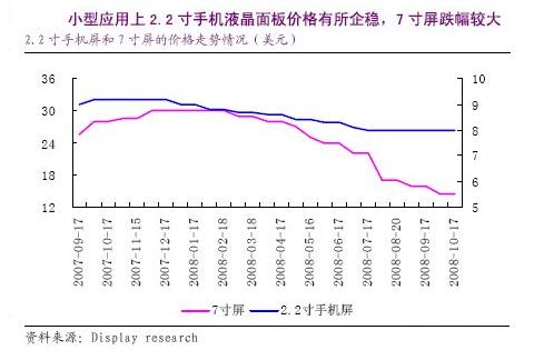 圖3:小型應(yīng)用上2.2寸手機(jī)液晶面板價(jià)格有所企穩(wěn),7寸屏跌幅較大。