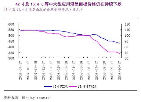 圖4:42寸和15.4寸等中大型應(yīng)用液晶面板價(jià)格仍在持續(xù)下跌。