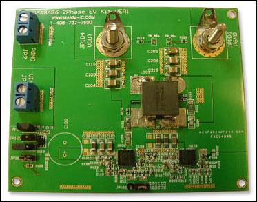 圖2. 原型電路板包含兩片MAX8686 PWM控制器和一組耦合線圈,每路輸出可提供1.2V、最大50A電流。