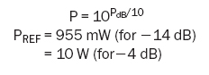 當D類放大器的工作電壓為14V時,可出現98W的峰值。轉換為分貝是: