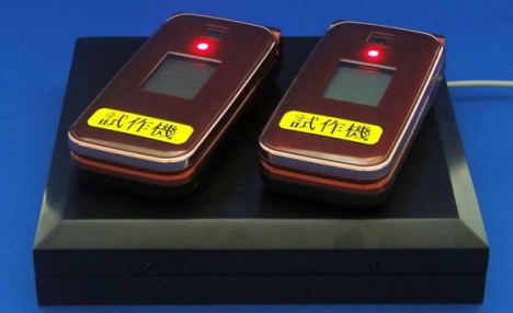 在富士通的演示中,兩部手機正進行無線充電