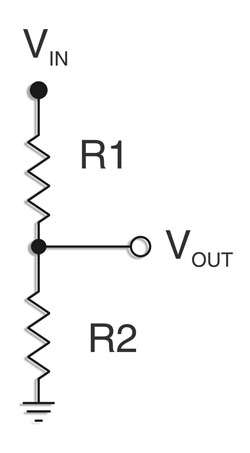 普通電阻型分壓器由兩個電阻串聯而成(如圖1所示)。電壓從分壓器的頂端輸入,由兩個電阻之間的節點輸出,而參考電壓(通常是接地電路)則連接在分壓器的底端。