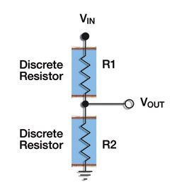 通過選擇單片襯底上的高精度薄膜分壓器,設計人員可以確保分壓器中的電阻元件具有非常相似的電氣特性,并在溫度和時間變化時實現很好的跟蹤。在公用襯底上的材料和處理過程的相似性確保了分壓器能夠在所有比值和環境下更為穩定,且性能更好。