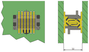 其實,連接器最關鍵的設計在于母端子及公針形成的觸點。不良的設計、制程及不適的基材料、電鍍層,都可以導致不理想的接觸甚至無法形成觸點。反之,過大的夾持正向力則會導致連接器的表鍍層過度磨損而減短其機械壽命,即插拔次數。觸點的設計有車床圓形針及端子,如歐式DIN41612及ERmet2mmM型的電源端子等、沖壓成型的雙桿端子及針如2mmHM電源模塊、SMC連接器等、公母同體雙桿端子如:MicroStac等。表鍍層的材料有金、鈀、鎳、銀、錫、等。銀的導電性高,可是容易變色,特別是在含硫的環境中。輕微則僅影響外觀,嚴重則降低導電性能。鈀鎳的硬度高及空隙率少,所以其耐蝕性良好。金的化學穩定性高,硬度低,成本高。相比之下,各有其利弊。