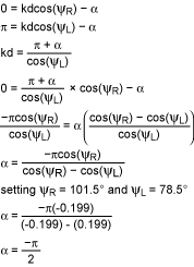 假設(shè)揚聲器置于手持設(shè)備,揚聲器間距d不會超過7cm,并假設(shè)頭的寬度是20cm,耳朵和手持設(shè)備的距離為50cm。則夾角ΨL和ΨR(x正半軸與聽眾左、右耳之間的夾角)為78.5°和101.5°。當(dāng)左聲道沒有信號,而右聲道有信號時,最合適的相差應(yīng)當(dāng)使右耳附近的聲強最大(圖5)。