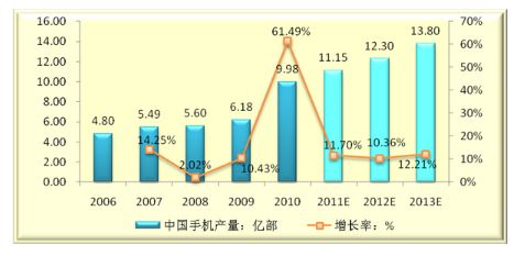 2006-2013年中國手機產量及未來發展趨勢