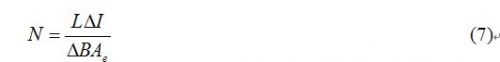 由圖得到磁導率為60,H=21Oe,磁導率下降到90%,為了在給定峰值電流時保持給定電感量,需增加匝數(shù)為N匝,選取111匝。