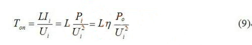 其中:Ui、Ii為輸入電壓和電流有效值。在一定輸入電壓和輸入功率時,Ton是常數(shù)。當輸出功率和電感一定時,導通時間Ton與輸入電壓Ui的平方成反比。
