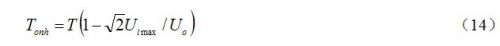 例如,假定導通時間為10μs,1.414Uimin/ Uo=0.65,如果輸入電壓在±20%范圍變化,最低輸入電壓為220×0.8,輸出電壓為Uo =1.414×220×0.8/0.65=383V。周期為10/0.35=28.57μs,頻率為35kHz。在15°時,周期為12μs,相當于開關頻率為83kHz。在最高輸入電壓時,由式(12)得到最高電壓導通時間Tonh=(0.8/1.2)2×TonL=4.444μs,在峰值時的開關周期為T=Tonh/(1-1.414×1.2×220/383)=176μs,相當于開關頻率為5.66kHz。