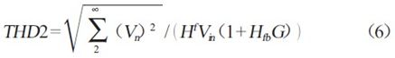 比較式(2)和式(6)可以看出,具有反饋環(huán)路閉環(huán)系統(tǒng)THD 為開環(huán)系統(tǒng)THD 的1/(1+HfbG),即通過反饋結(jié)構(gòu)減小了系統(tǒng)的THD。