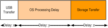雖然USB速度快了十倍(從480Mbps 到 5Gbps),但是真正的吞吐量將遠遠低于理論值,因為USB延時(X)比操作系統處理延遲(Y)和存儲傳輸延遲(Z)都小得多,其相對于總延時可以忽略 不計。Z延時可以通過選擇更好的存儲設備來改進,但是Y延時,則需要通過更有效地系統設計來管理。