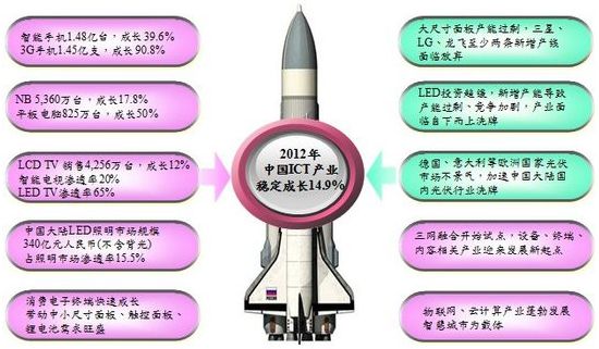 - 2012年大陸ICT產業成長率預估為14.9%,產值可望突破10兆元