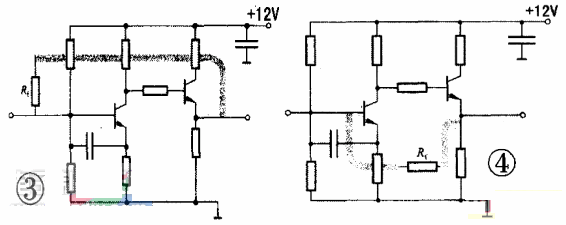 如圖3所示放大電路,由于反饋導線越過放大器基極電阻??赡墚a(chǎn)生寄生耦合,影響電路工作。圖4所示電路的布設將反饋元件置于中間,輸出導線遠離前級元件,避免干擾。
