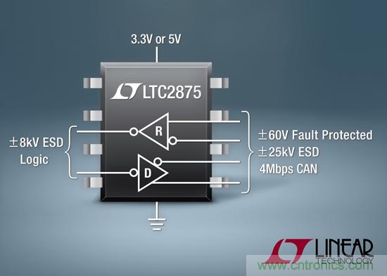 【導讀】近日,凌力爾特公司推出極其堅固的高壓容限 CAN (控制器局域網) 收發器 LTC2875,該器件無需配置昂貴的外部保護設備,極大地減少了現場故障。在實際的 CAN 系統中,安裝跨接線故障、閃電導致的浪涌電壓以及接地電壓故障可能引起超過典型收發器絕對最大額定值的過壓情況。