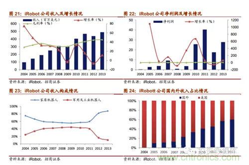 iRobot是家居清潔機器人的領先企業,產品戰略布局以家居清潔機器人為主。2014年上半年實現營收2.54億美元,2013年收入達4.87億美元,全球市場占有率超過60%,2014年8月總市值為10.10億美元