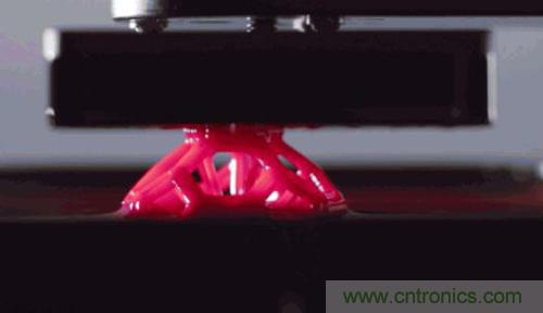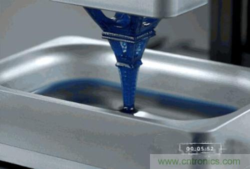 在從液體里“拉”出固體的3D打印技術當中,活化固化劑的方式從熱壓變成了光,所以這種技術被稱為立體光固化成型(SLA)。這里所用到的液體材料被稱為光敏樹脂,一般是環(huán)氧樹脂或不飽和聚酯等摻雜一些對特定波長敏感的光引發(fā)劑制成的。這類技術本身也并不是什么新生事物了,它的歷史可以追溯到1984年。