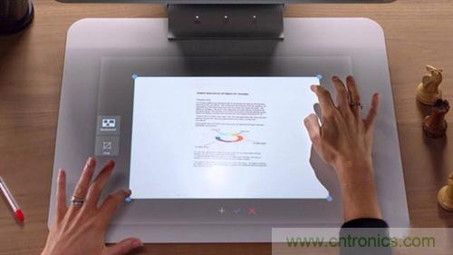 第一代的惠普 Sprout 在機(jī)身頂部有一組攝像頭和投影儀,可將操作界面投射到集成在底座部分的觸摸板上,能夠?qū)崿F(xiàn)觸摸、3D 掃描等操作。惠普公司將其稱為“混合現(xiàn)實(shí)”。由于惠普公司將這一產(chǎn)品定位在家庭娛樂與創(chuàng)造方面,這一產(chǎn)品并沒有吸引到更多的目光。